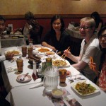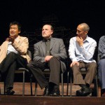 After the play, three Yale alumni: Francis Jue (’86) who won an Obie for his portrayal of David Henry Hwang’s father in the play, Pun Bandhu (MFA, ’01), who played David Henry Hwang, David Henry Hwang (MFA, ’83), the playwright, himself, plus TheatreWorks Founder and Artistic Director, Robert Kelley, led a multi-leveled discussion of race, culture, politics, theater, and the media. Even TheatreWorks Managing Director, Phil Santora (Yale MFA ’92) made an appearance! The performance was preceded by a festive meal at the New Mongolian BBQ. The whole event reminded me of what I loved about Yale, catching up with old friends and making new ones, sharing challenging and thought-provoking experiences, and then engaging in lively discussions and analysis as far into the night as our current post-student schedules would permit. Topics in brief: